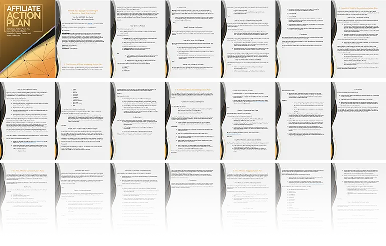 P.S. Have you ever wondered what the six-figure super affiliates do that you don’t do? You’ll find out inside these action plans! Now you too can put the most profitable affiliate marketing strategies to work for you starting today!