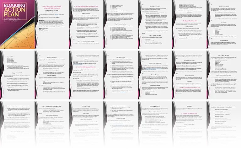 You’ll go from being overwhelmed to overjoyed once you see what these 20 action plans can do for you. I’ve taken an entire multi-volume encyclopedia set of blogging information and digested it down to the bare minimum of what you need to know to get great results.